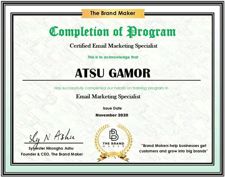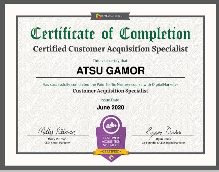 Atsu have Coach & Mentor me to become a Digital Marketer! He helped me to get the necsessary Professional Certifications & Skills. And I'm currently enployed as a Digital Marketer by a Company here at Dubai.